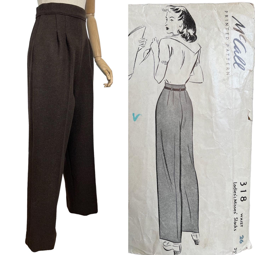1940s Fab High Waist Pants Pattern Mccall 318 Figure Flattering Kate Hepburn Style Slacks Trousers Waist 3 High Waist Pants Pattern Vintage Pants Pants Pattern